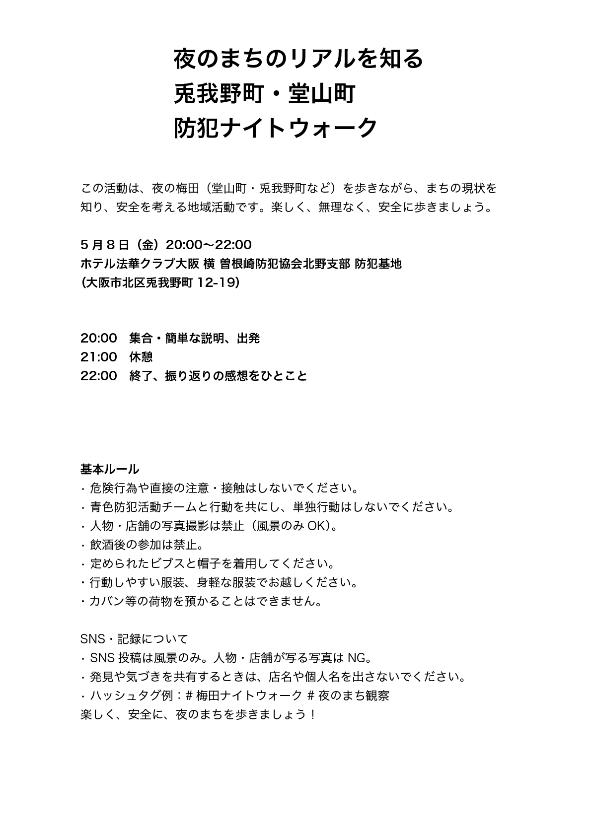 • ハッシュタグ例:#梅田ナイトウォーク #夜のまち観察